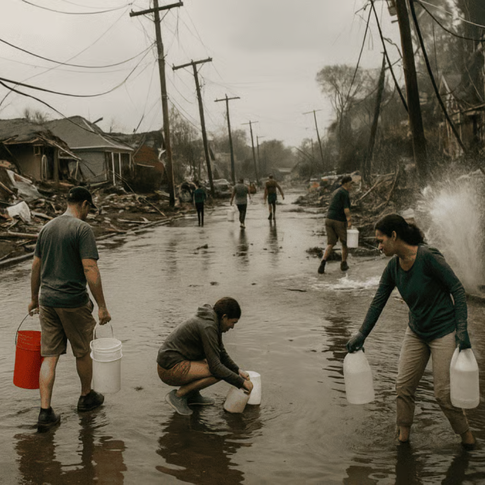 When disaster strikes: hurricanes, blackouts, grid failures—bottled water sells out in hours, not days. Shelves empty while you're still processing what's happening.